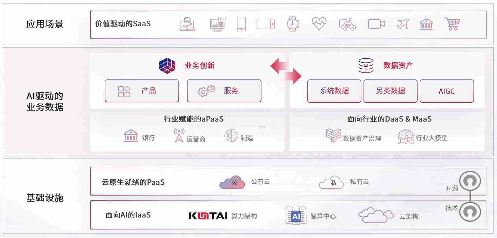 数字时代,,围绕企业数字化转型的关键要素,,,KOO钱包数码开创性的提出数云融合战略和技术体系框架,,着力在云原生、、、数字原生、、、、AI原生和信创产业上架构产品和服务能力,,为处在不同数字化转型阶段的快消零售、、、汽车、、、、金融、、、医疗、、、、政企、、、、教育、、、、运营商等行业客户提供泛在的敏捷IT能力和融合的数据驱动能力,,构建跨界融合创新的数字业务场景和新业务模式,,,助力企业级客户建立面向未来的核心能力和竞争优势,,,全面推动社会的数字化、、智能化转型升级。。
